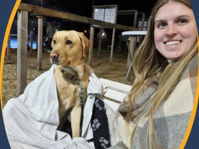 lees meerEen jaar lang hielden George en Mieke Nelson als pleeggezin bij zich. De eerst nogal wilde en enthousiaste pup transformeerde naar een brave en leergierige hond.